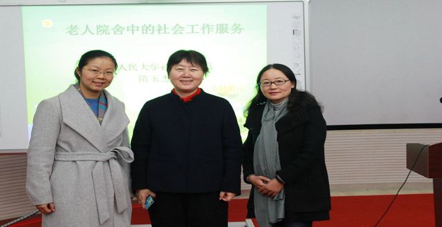 隋教授对老人院舍中的社会工作服务作了系统性介绍和阐述。他从人院舍为什么需要社会工作者、社会工作者干预的作用、社会工作的岗位设置、社会工作者的工作目的、社会工作者在老人院舍的任务等五个方面进行详细的论述。在讲座结束前,隋教授语重心长的告诫同学们,随着我国人口老龄化的日益加剧,专业社会工作必将融入养老事业体系建设,大家要厘清自我定位,找准专业方向,通过不断地学习,打好专业基础知识和本领,他希望同学们利用在校学习的时间,通过现实调查与数据统计,走专业化、多样化道路,明确未来的就业方向。