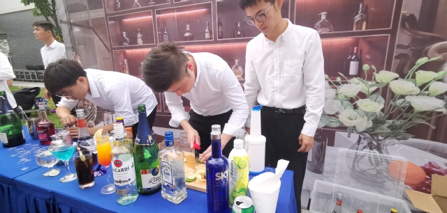 今年旅社院的毕业典礼后,一场以员工技能展示的冷餐会,在香槟雨中拉开序幕。白色的桌布,进行设计的冷餐摆台,精美的雕花,花样繁多的西式调酒,以及还有刻有毕业生姓名一枚小小的戒指,都包含了公司对毕业生们满满祝福和期待。