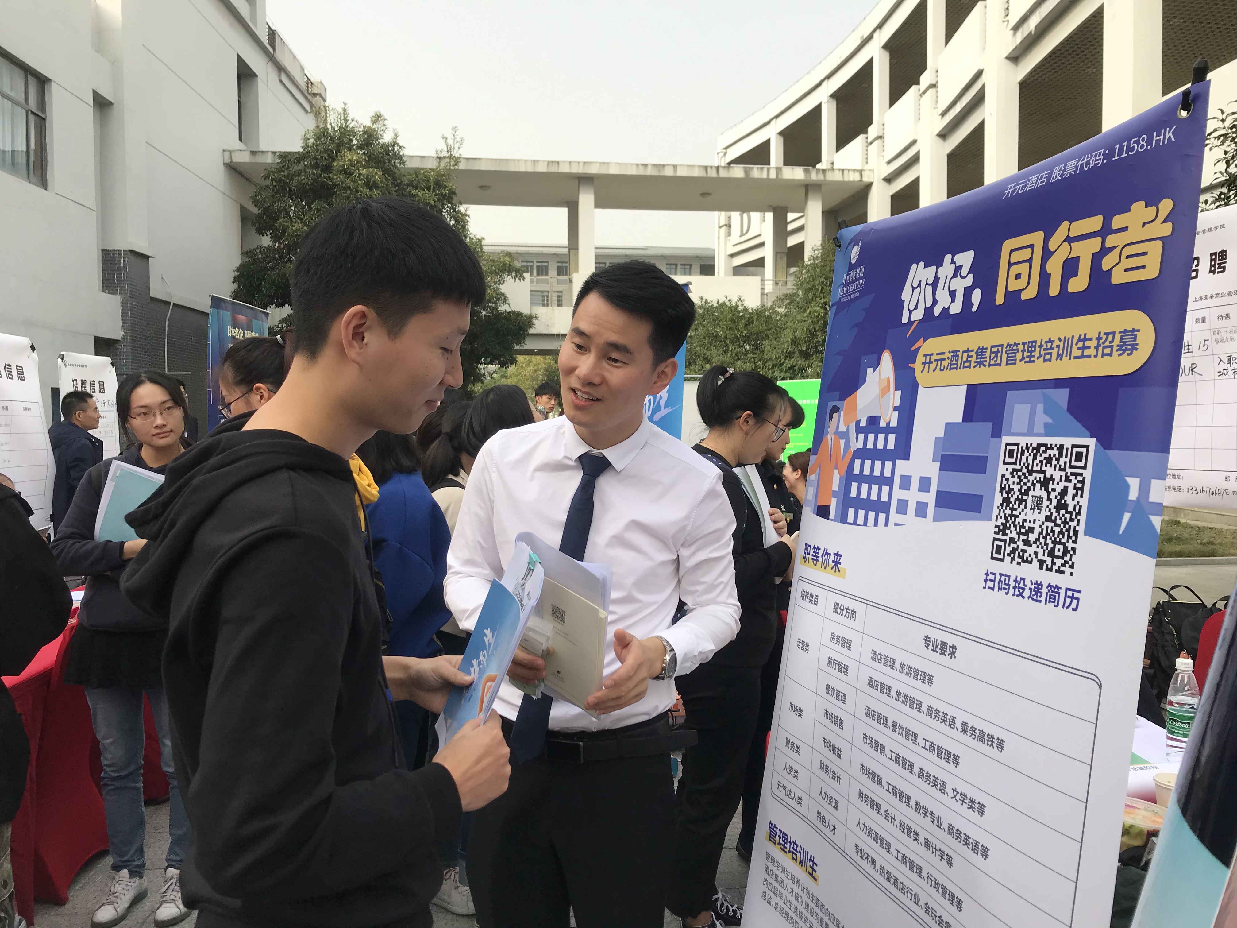 10月29日下午14点,在文科组团文浚苑,旅社院为2020届毕业生精心准备的第一场专场招聘会正式开始,本次招聘会邀请了来之江苏、上海、浙江的三十多家知名企业参加,提供了400余个职位,旅社院的280多名应届毕业生参加了招聘会。