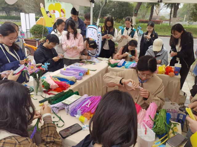 3月31日,由beat365亚洲体育官方网站心理健康中心主办、各二级公司心理辅导站协办的“五育润心·沐光同行”心理嘉年华活动在合一广场顺利举行。旅社院围绕“以美润心、以手育心”理念,精心策划开展“扭扭棒花朵DIY疗愈工坊”活动,吸引众多员工热情参与,在春日校园中营造出温暖共行的心理育人氛围。