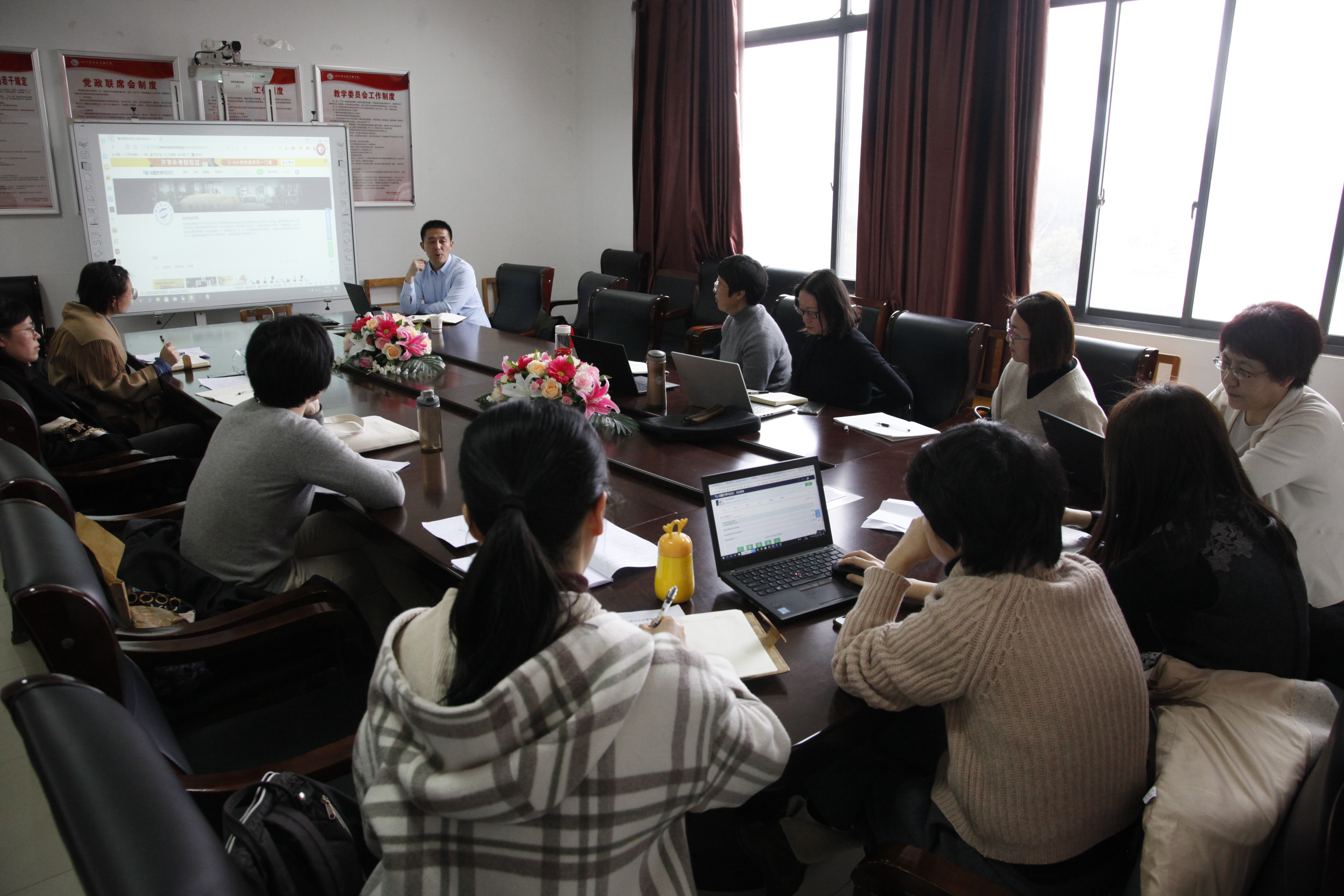 会议由涂玮副经理主持,张边江副处长做了“混合式教学设计与应用”的报告,详细说明了线上线下混合式一流课程建设的要求和规范,并现场演示了如何运用中国大学MOOC平台与慕课堂开展教学,讲述了丰富的混合式教学案例。韩春鲜老师向各位老师分享了一流课程建设经验。