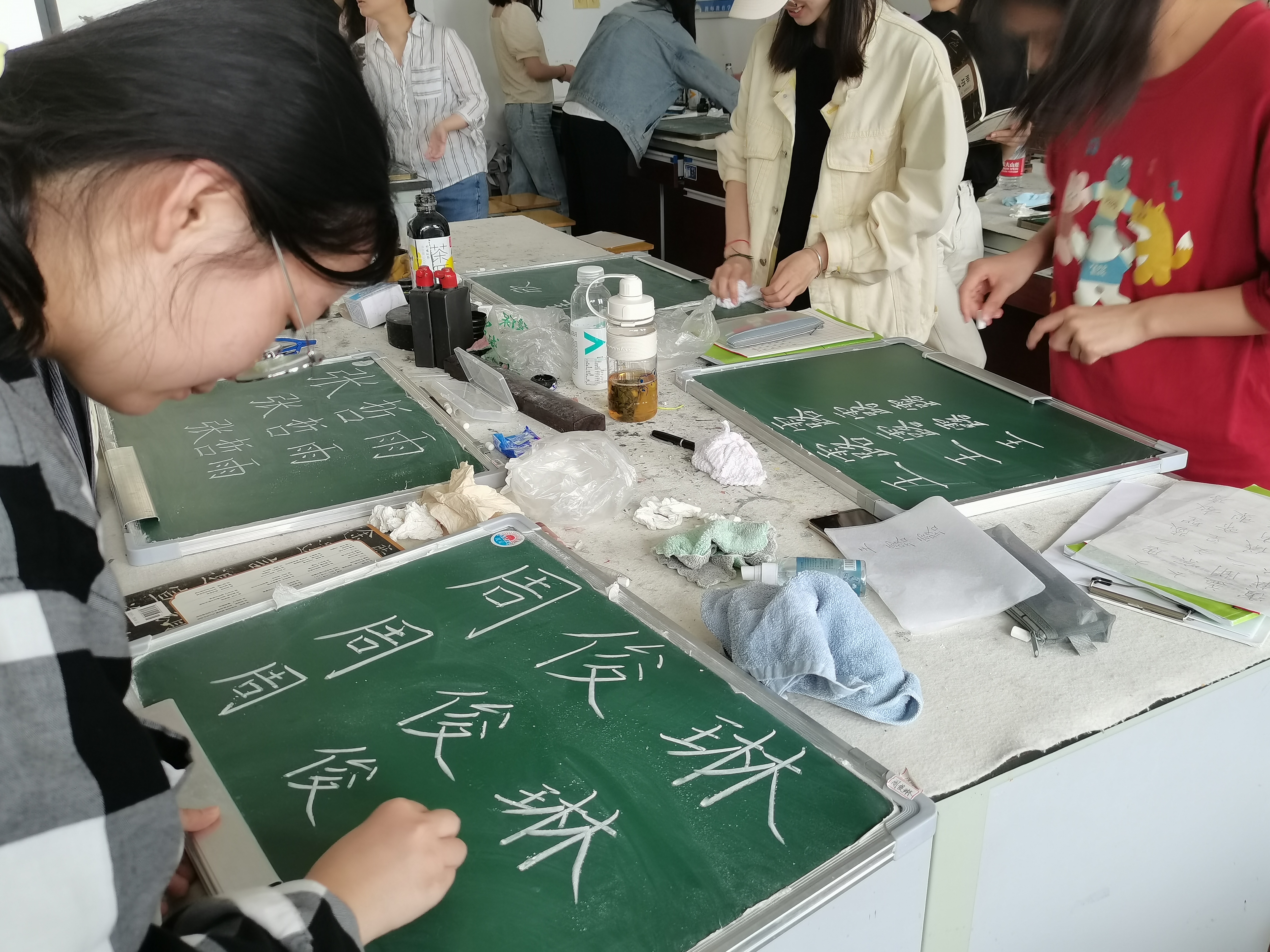 2020年5月18日,在秦翠红老师的组织下,2017级、2018级历史班开展了钢笔字、粉笔字(下略为“两字”)培训,此次培训由陈爱民教授指导。一张黑板,指尖翻转,舞动汉字的灵魂和千年历史的回声。