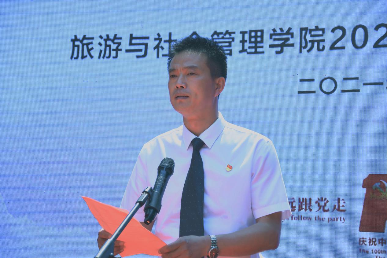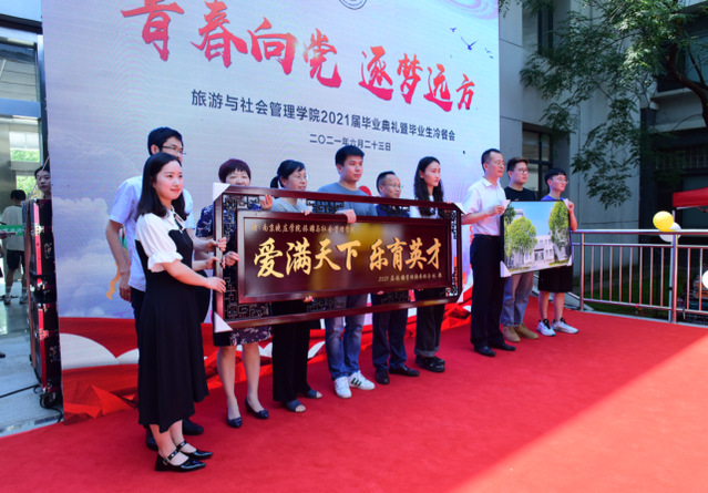 6月23日下午,“青春向党,逐梦远方”旅游与社会管理公司2021届毕业典礼暨毕业冷餐会在崇一楼文浚苑隆重举行,公司党政领导、各专业教师以及2021届毕业生共同出席毕业典礼,典礼由赵文迪与韩耀扬主持。