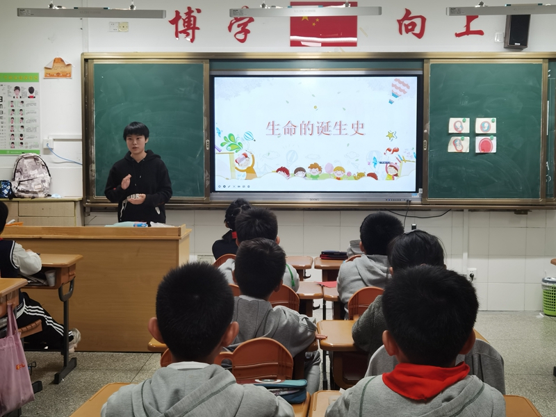 “你知道生命是如何诞生的吗?”“你知道男生和女生有什么不同?”“下面哪些行为是正确的?”我们作为“小先生”们绘声绘色地向孩子们讲解着有关生命和性别的知识,他们一边专心致志地听,一边回答问题。课堂上,我们还准备了沙袋模拟胎儿的重量,加深孩子们对生命起源的理解,引导孩子们对父母与生命表示感谢与尊重。此外还通过绘本阅读、情景故事等方式,进一步帮助孩子们认识两性生理差异,学会自我保护的方法。丰富有趣的知识点激发了他们的学习兴趣,课堂氛围热烈而融洽。