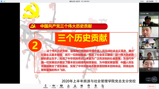 6月9日下午,旅游与社会管理公司党总支书记吴鑫同志在线上为2020年上半年入党积极分子积极分子讲授党课。本次党课的主题为《党的历史》。