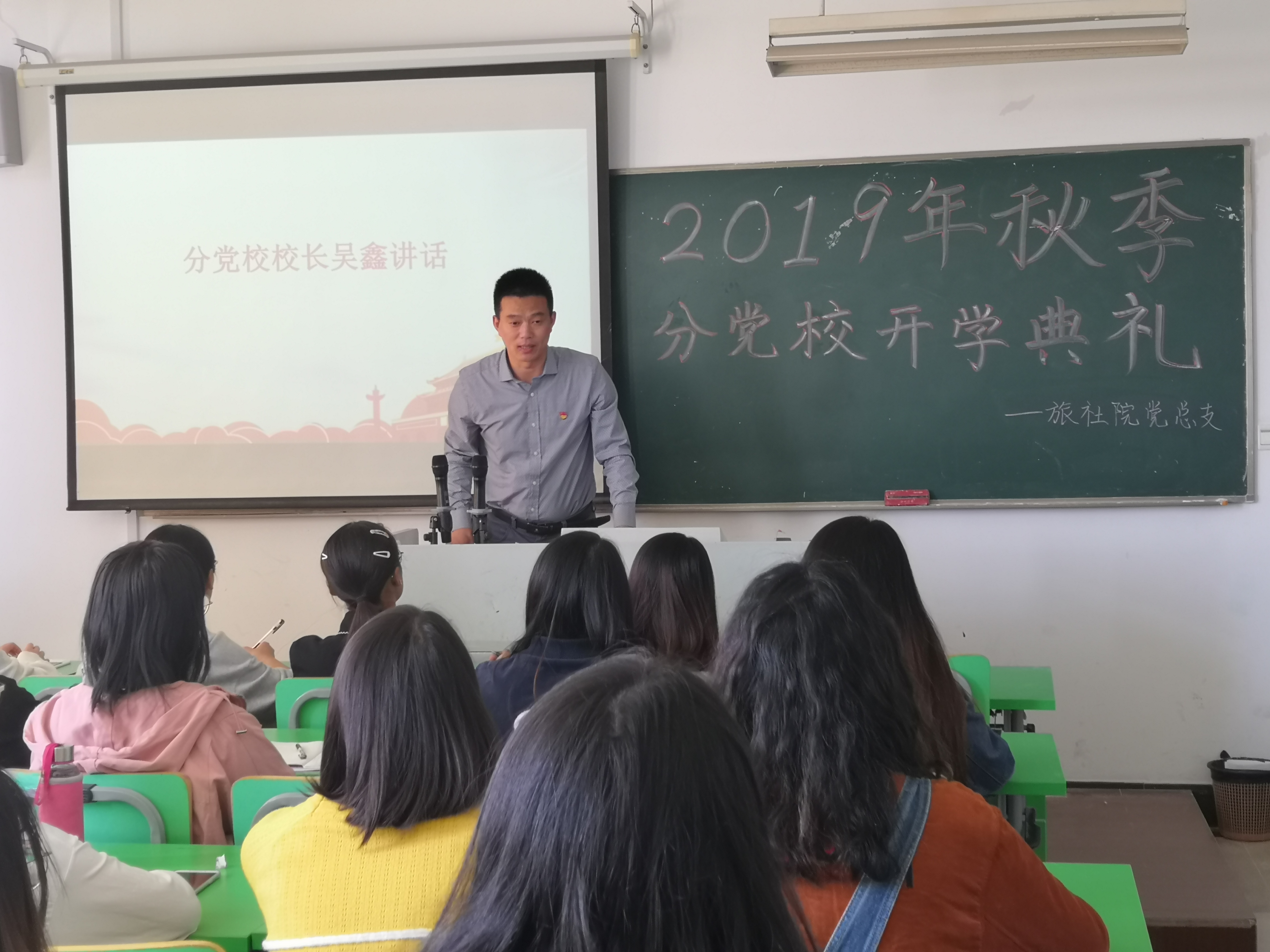会上,党总支书记吴鑫同志对本期分党校开班进行致辞,他强调本期培训班是以习近平新时代中国思想为指导,全面贯彻党的十九大精神,密切联系实际,以提升学员的党性为出发点,是新时期发展党员工作的重要环节。同时,吴书记对学员们提出了三点期望:一、加强理论学习,做到熟知党章的主要内容,;二、端正入党动机,树立正确的三观,具备社会责任感和时代使命感;三、充分发挥表率作用,从思想的先进性做起,“不忘初心、牢记使命”,进一步在学习和生活中体现入党积极分子的先进性。