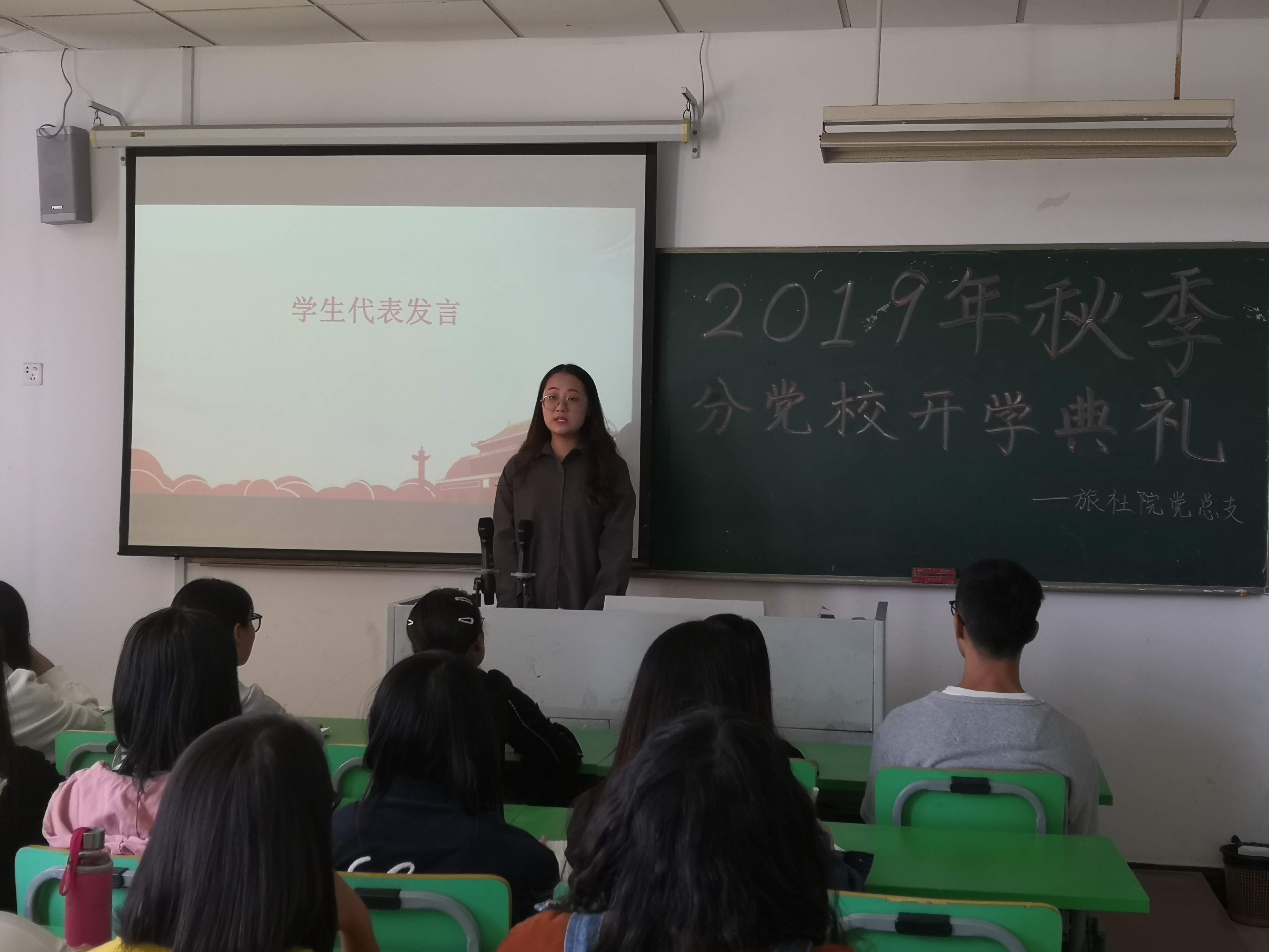 蒋雨婷同学作为本期分党校的学员代表进行发言,她分享了个人的入党动机,并希望能在本期培训中进一步加强自己的素养,为身边的同学树立良好的榜样。