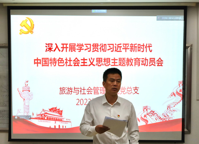 首先,公司党总支副书记孙景荣对公司“学思想、强党性、重实践、建新功”主题教育实施方案进行了解读。孙书记强调要以理论教育四字为中心,开展调查研究;要解决实际问题,重视调研实践。随后,吴鑫书记传达了上级关于学习贯彻习近平新时代中国特色社会主义思想主题教育的相关文件精神,强调要在主题教育全程中切实提高政治站位、把握目标要求、深化重点举措、加强组织统筹。接下来,公司邀请了组织部副部长耿秀梅对本次主题教育提出指导意见,耿部长在讲话中表示要充分理解动员活动的重大意义,准确把握动员活动的主题要求,结合公司特色与实际开展活动,深入调查学习研究。最后,吴鑫书记总结本次会议,呼吁党员紧跟中央部署。在热烈掌声中,吴鑫书记宣布旅社院主题教育正式启动。