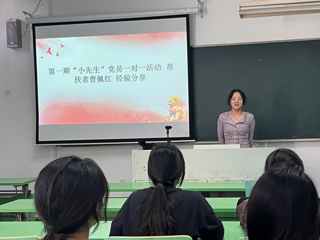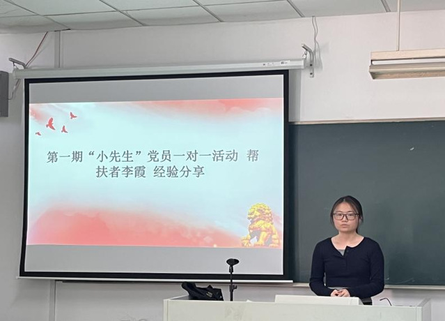 会上,野杏雨同志首先就本次帮扶活动的基本情况进行了介绍说明并向与会人员呈现了往期的帮扶活动成果。接着,由第一期“小先生”党员一对一帮扶活动的优秀帮扶者李霞和曹佩红同学进行了经验分享。两位分享者分别从被帮扶者的学习情况、帮扶内容、目标成果等多方面进行阐述。