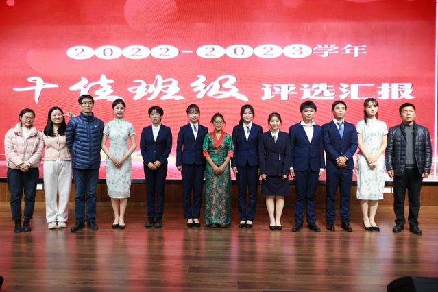 2023年11月30日晚,校2022-2023学年“十佳班级”评选汇报展示会在方山校区工科楼报告厅举行。21酒店管理班从20个提名班级中脱颖而出,以现场打分第一名、总分第七名的成绩获评校“十佳班级”荣誉称号。