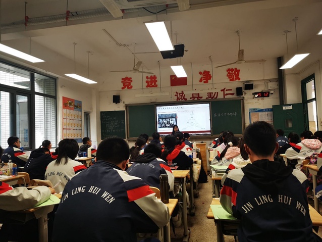 秦翠红老师在金陵汇文中学听取实习生汇报课