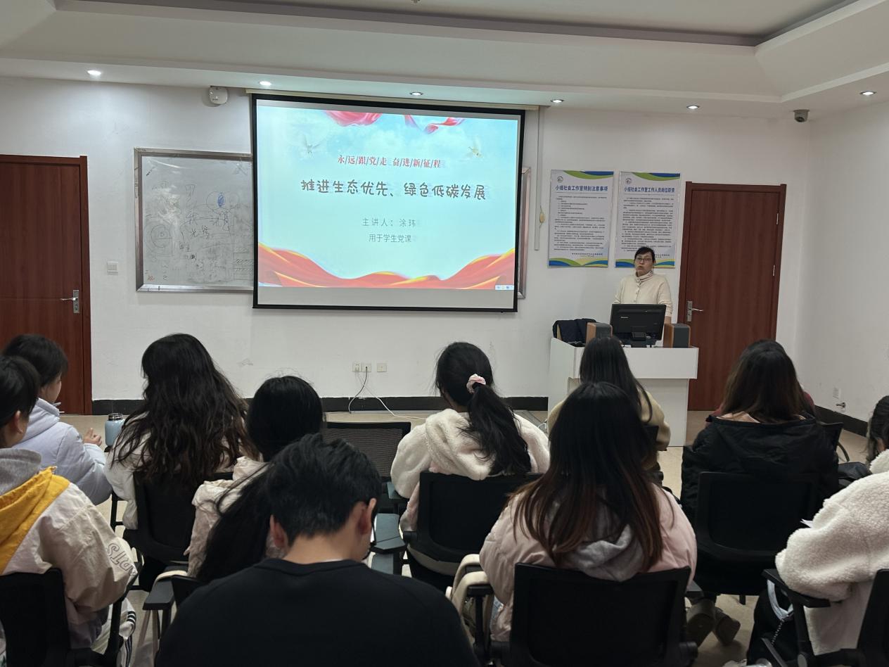 随后,涂院从马克思的生态优先性地位思想,习近平生态文明思想,生态优先、绿色低碳发展基本路径和生态优先、绿色低碳发展政策保障四个方面向积极分子们讲述了生态优先、绿色低碳的相关内容。