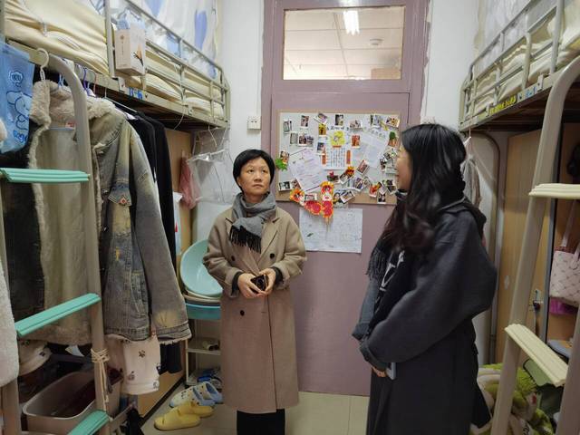 走访团队仔细查看了宿舍的电器使用情况、楼道消防设置及宿舍整洁程度和文化建设。对于存在安全隐患的宿舍,老师们提醒员工及时进行整改,确保安全无忧。同时,老师们也对卫生和文化建设情况良好的宿舍提出了表扬,鼓励同学们继续保持。老师们把握机会,与在宿舍的员工进行了面对面交流,倾听他们的心声,解答疑惑。老师们询问了同学们复习备考的情况,鼓励他们合理安排时间,认真复习,诚信考试,争取优秀成绩,树立晓庄学子的良好形象。老师们还对员工购买返家车票和寒假安排等事项进行了温馨提醒。走访加深了旅社院师生之间的情感联系,“面对面”地开展了一堂诚信与安全教育课,对员工部分实际需求提供了针对性的指导和支持。