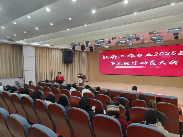 12月23日游与社会管理公司在文北200报告厅召开社会工作专业2025届毕业生实习动员大会。公司领导、辅导员及社会工作专业师生出席大会,会议主要围绕毕业实习目的、内容、方式、安全和纪律等相关议题展开。